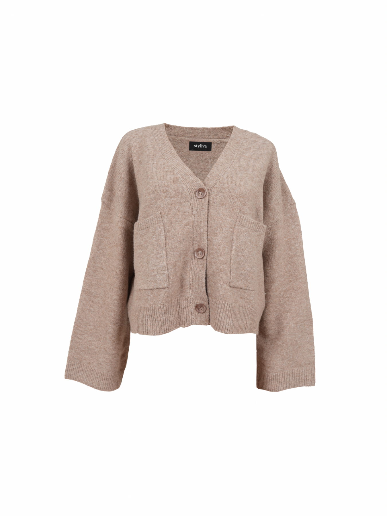 Wygodny sweter z zapięciem na guziki i pojemnymi kieszeniami. Idealny jako dodatkowa warstwa lub zamiast kurtki w łagodniejsze dni.